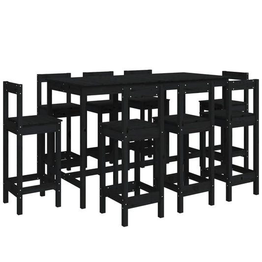 Ausverkauft9-tlg. Bar-Set Schwarz Massivholz Kiefer