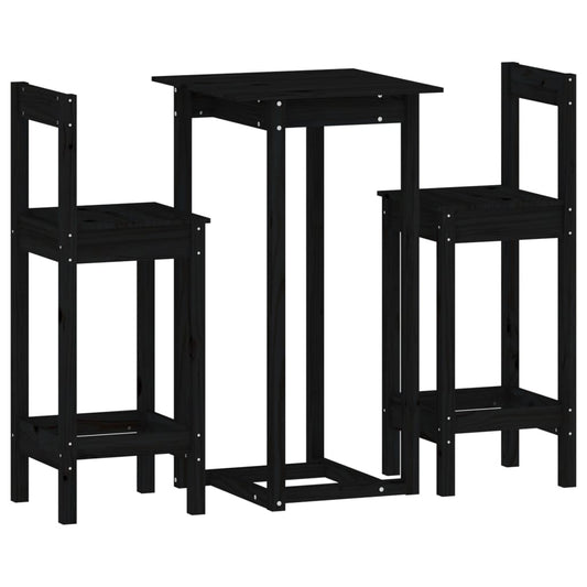 Ausverkauft3-tlg. Bar-Set Schwarz Massivholz Kiefer