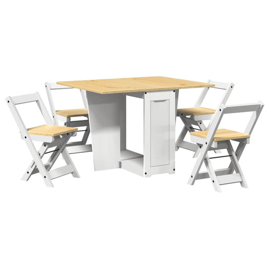 5-tlg. Butterfly-Esstisch-Set Corona Weiß Kiefernholz