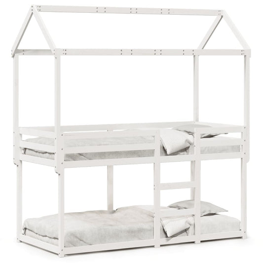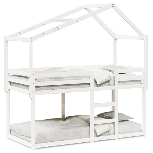 Etagenbett mit Dach Weiß 90x200 cm Massivholz Kiefer