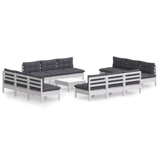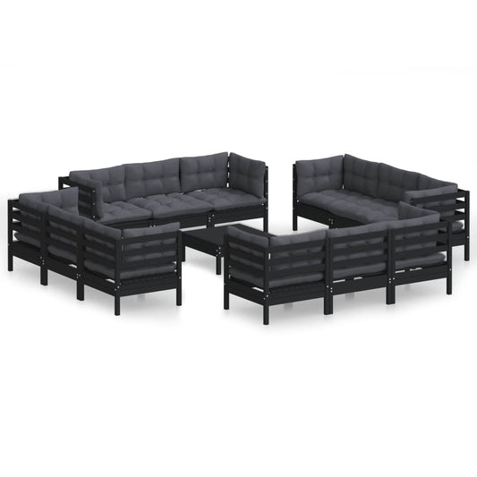 13-tlg. Garten-Lounge-Set mit Anthrazit Kissen Kiefernholz