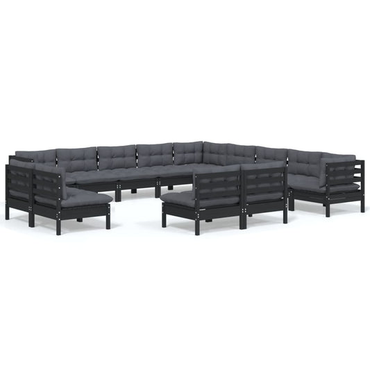 13-tlg. Garten-Lounge-Set mit Kissen Schwarz Massivholz Kiefer