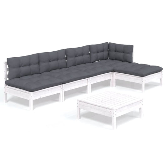 6-tlg. Garten-Lounge-Set mit Kissen Weiß Kiefernholz