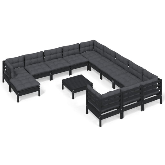 13-tlg. Garten-Lounge-Set mit Kissen Schwarz Kiefernholz