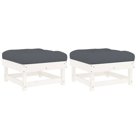 Gartenhocker mit Kissen 2 Stk. Weiß Massivholz Kiefer