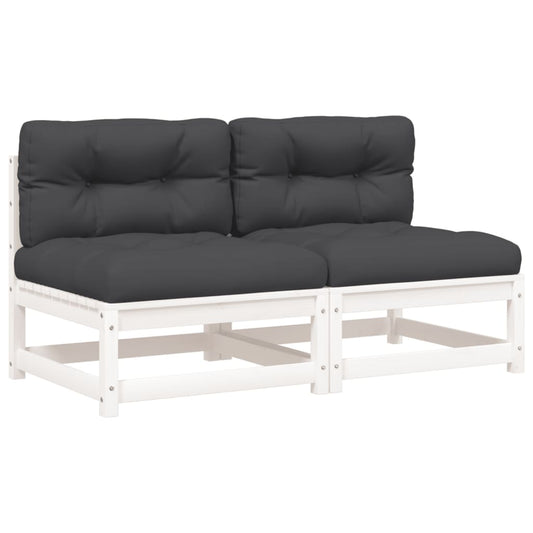 Gartensofas ohne Armlehnen mit Kissen 2 Stk. Weiß Kiefernholz