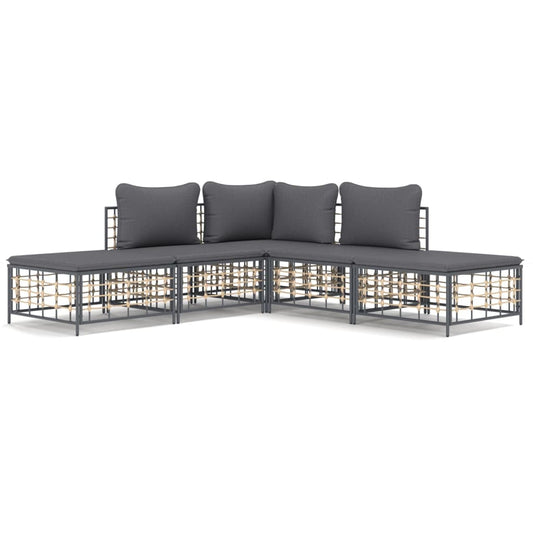 5-tlg. Garten-Lounge-Set mit Kissen Anthrazit Poly Rattan