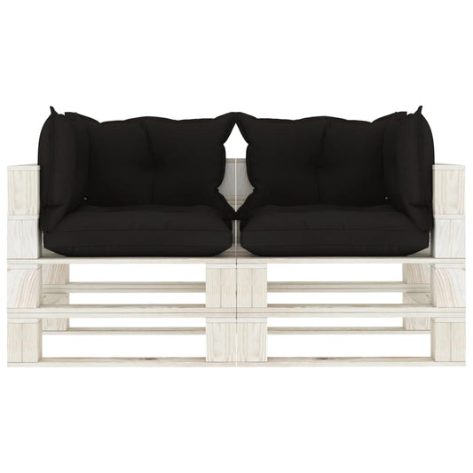 Garten-Palettensofa 2-Sitzer mit schwarzen Kissen Holz