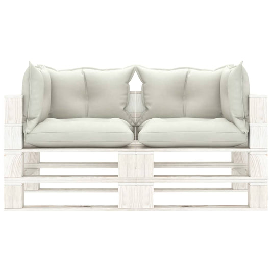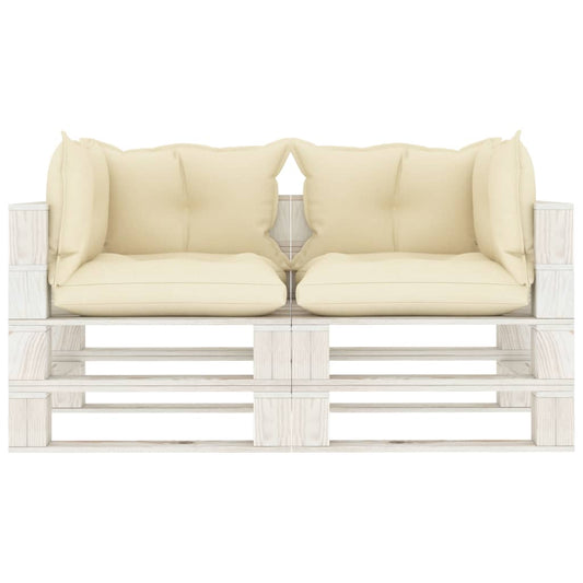 Garten-Palettensofa 2-Sitzer mit Creme-Kissen Holz