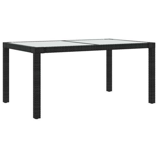 Gartentisch 150x90x75 cm Gehärtetes Glas Poly Rattan Schwarz