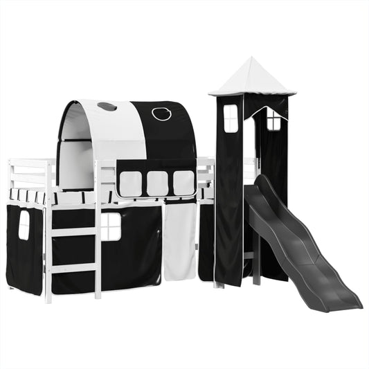 Kinderhochbett mit Turm Weiß & Schwarz 90x200 cm Kiefernholz