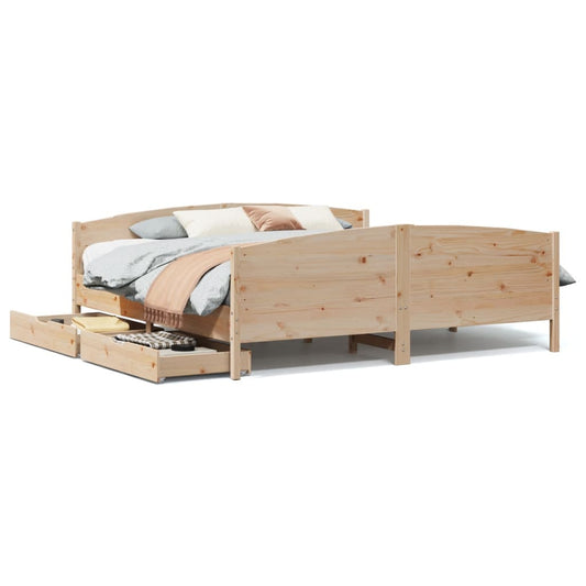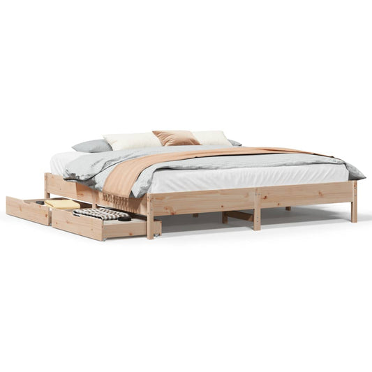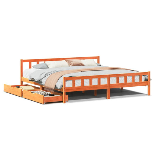 Massivholzbett mit Schubladen Wachsbraun 180x200 cm Kiefer