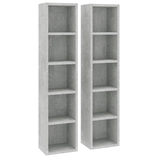 CD-Regale 2 Stk. Betongrau 21x16x93,5 cm Holzwerkstoff