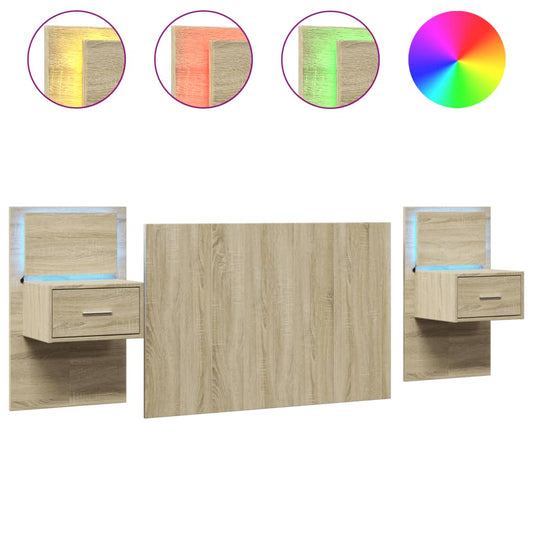 Kopfteil mit Nachttischen Sonoma-Eiche 200 cm Holzwerkstoff