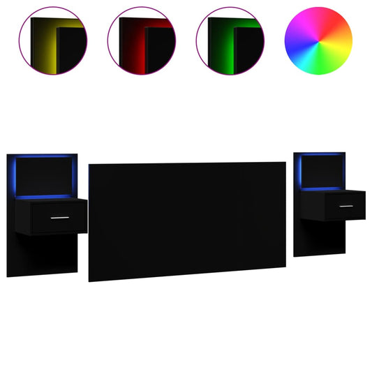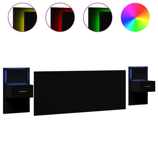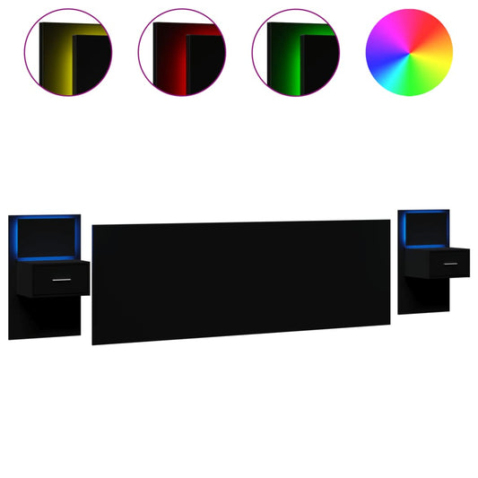 Kopfteil mit Nachttischen Schwarz 200 cm Holzwerkstoff