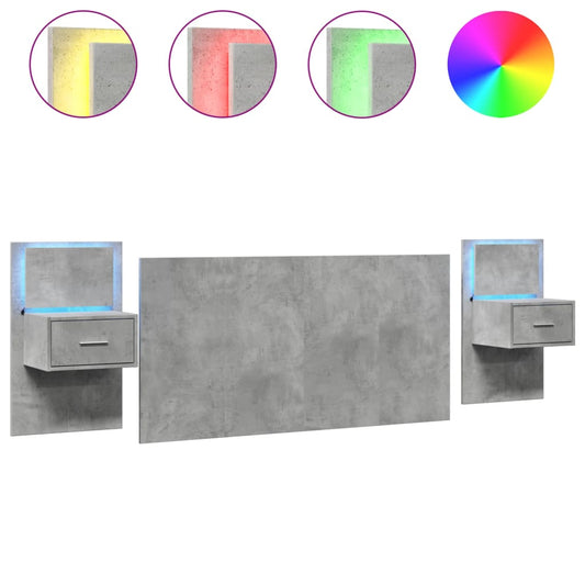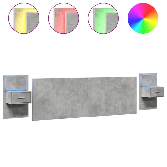 Kopfteil mit Nachttischen Betongrau 240 cm Holzwerkstoff