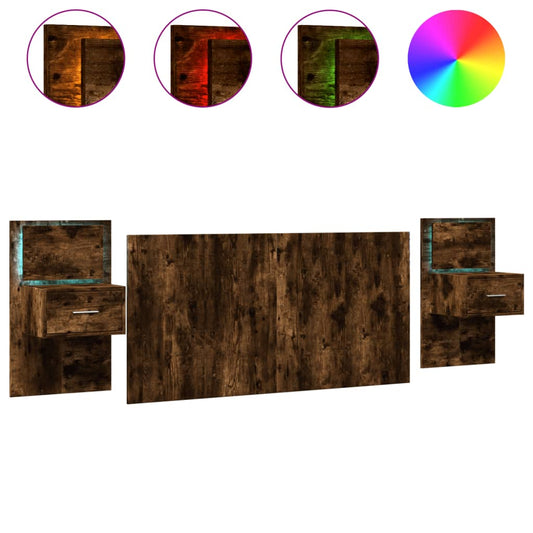 Kopfteil mit Nachttischen Räuchereiche 240 cm Holzwerkstoff