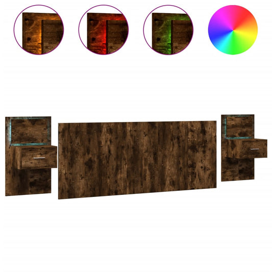 Kopfteil mit Nachttischen Räuchereiche 200 cm Holzwerkstoff