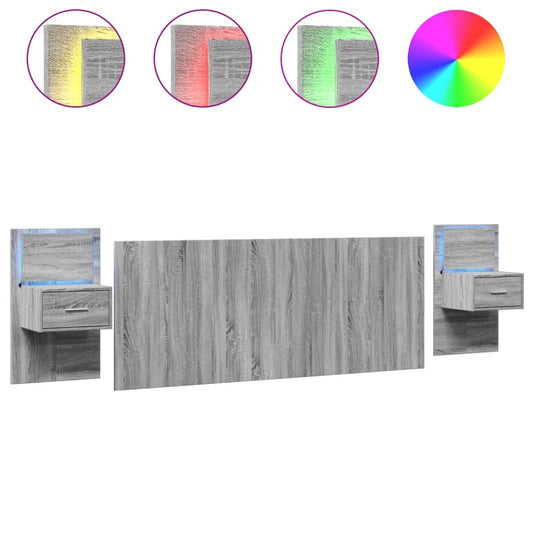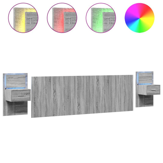 Kopfteil mit Nachttischen Grau Sonoma 200 cm Holzwerkstoff