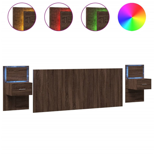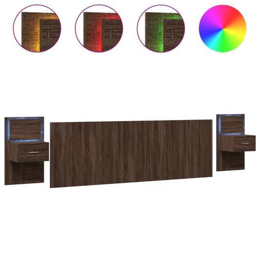 Kopfteil mit Nachttischen Braun Eiche 200 cm Holzwerkstoff