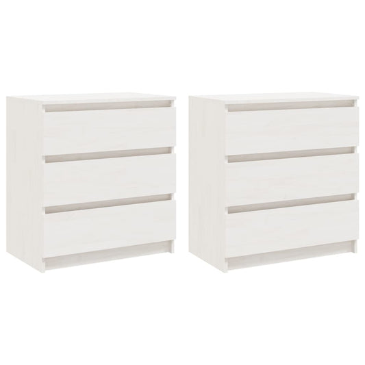Nachttische 2 Stk. Weiß 60x36x64 cm Massivholz Kiefer