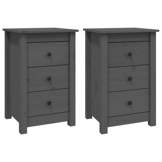 Nachttische 2 Stk. Grau 40x35x61,5 cm Massivholz Kiefer