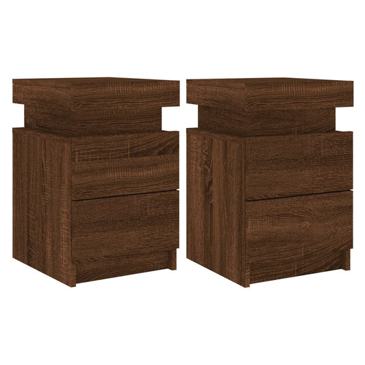 Nachttische mit LED-Leuchten 2 Stk. Braun Eiche Holzwerkstoff