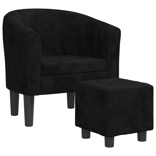 AusverkauftClubsessel mit Fußhocker Schwarz Samt