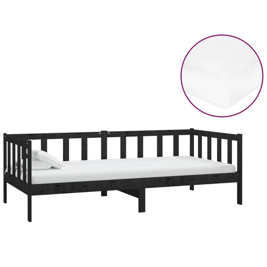 Tagesbett mit Matratze 90x200 cm Schwarz Kiefer Massivholz