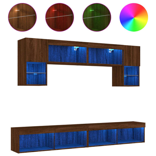 8-tlg. Wohnwand mit LED-Beleuchtung Braun Eichen-Optik