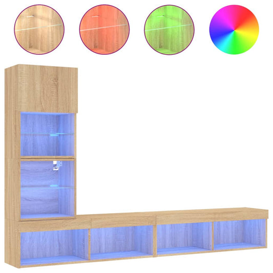 4-tlg. Wohnwand mit LED-Beleuchtung Sonoma-Eiche Holzwerkstoff