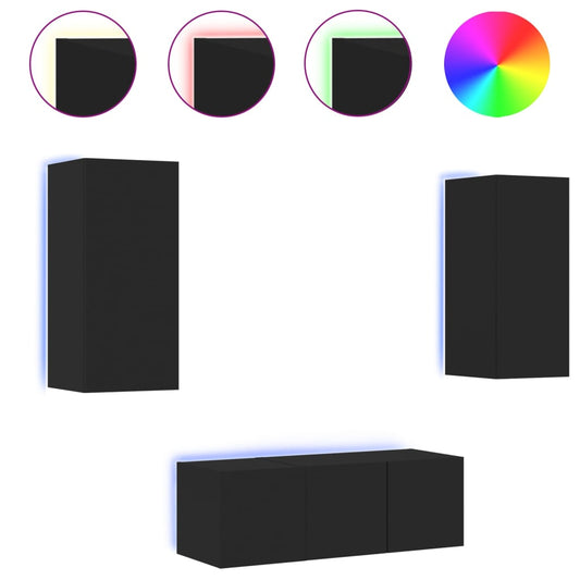 4-tlg. Wohnwand mit LED-Beleuchtung Schwarz Holzwerkstoff