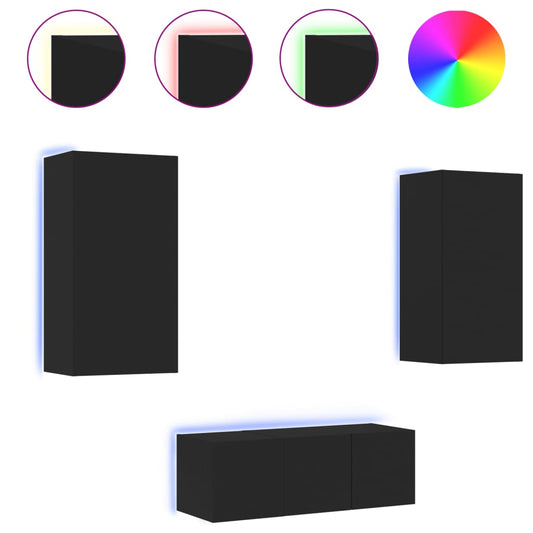4-tlg. Wohnwand mit LED-Beleuchtung Schwarz Holzwerkstoff
