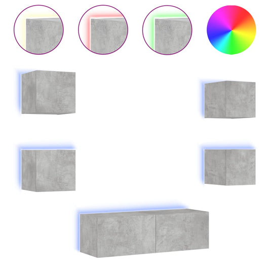 Ausverkauft5-tlg. TV-Wohnwand mit LED-Leuchten Betongrau