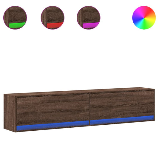 TV-Wandschrank mit LED Braun Eichen-Optik 180x31x38 cm