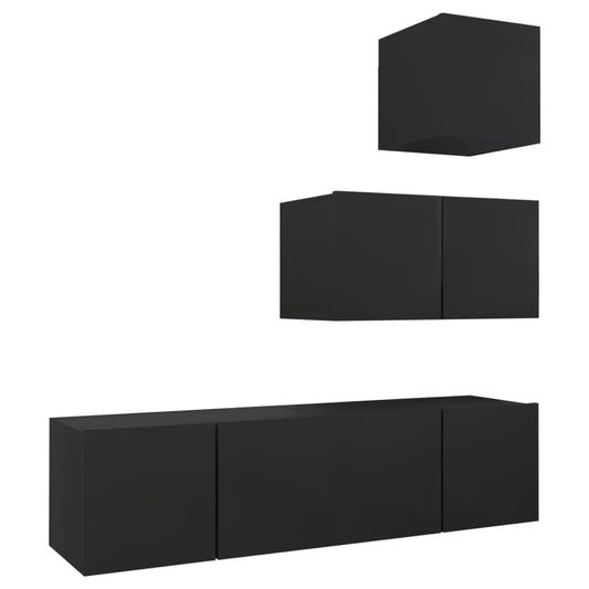 Ausverkauft4-tlg. TV-Schrank-Set Schwarz Holzwerkstoff