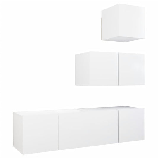 4-tlg. TV-Schrank-Set Hochglanz-Weiß Holzwerkstoff