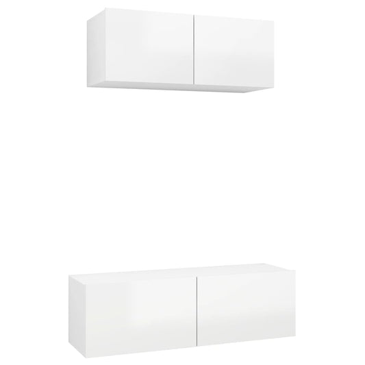 2-tlg. TV-Schrank-Set Hochglanz-Weiß Holzwerkstoff