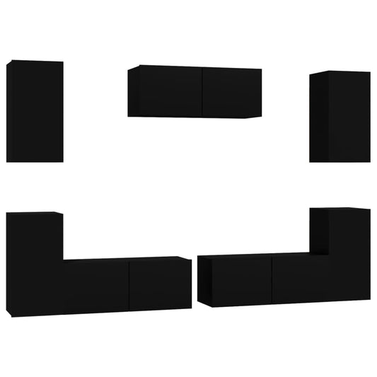 Ausverkauft6-tlg. TV-Schrank-Set Schwarz Holzwerkstoff