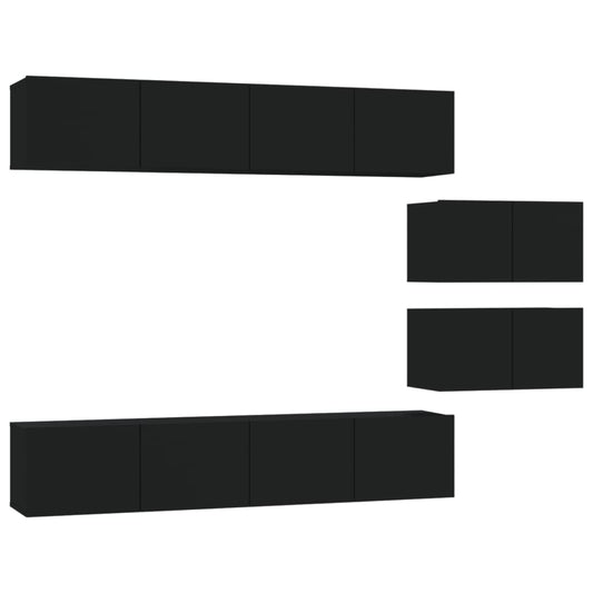 Ausverkauft8-tlg. TV-Schrank-Set Schwarz Holzwerkstoff