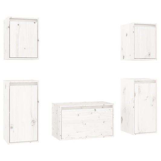 AusverkauftTV-Schränke 5 Stk. Weiß Massivholz Kiefer