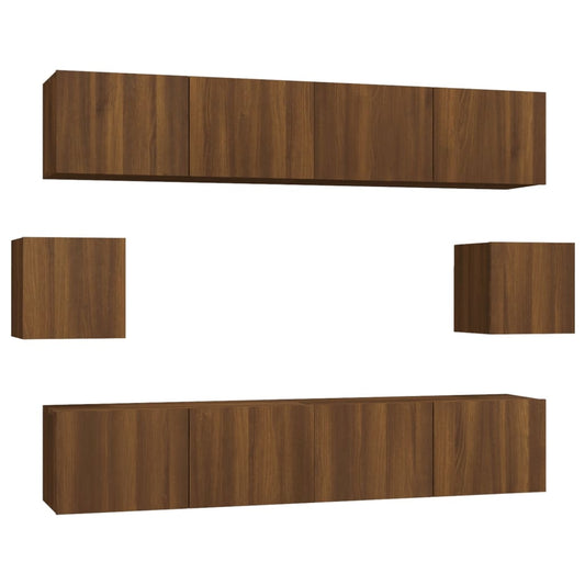 6-tlg. TV-Schrank-Set Braun Eichen-Optik Holzwerkstoff