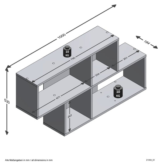 FMD Wandregal mit 3 Offenen Fächern 58,3x24,4x58,6 cm