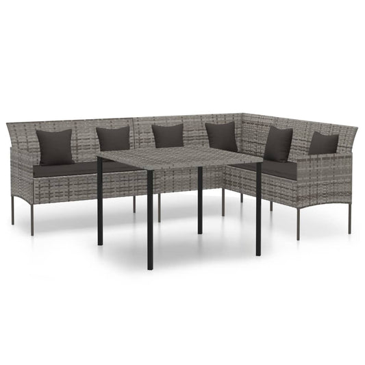 2-tlg. Garten-Essgruppe mit Kissen Grau Poly Rattan
