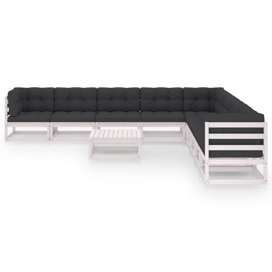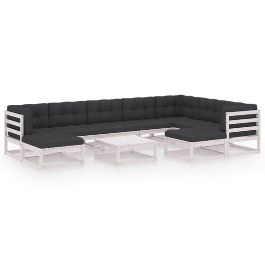 10-piece garden lounge set with cushions white solid pine