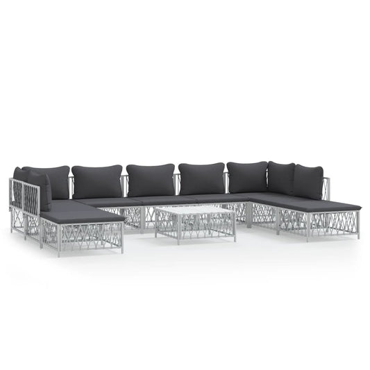 10-tlg. Garten-Lounge-Set mit Kissen Weiß Stahl