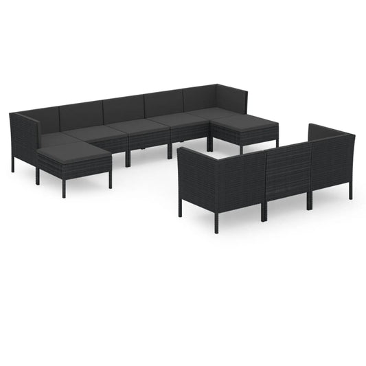 10-tlg. Garten-Lounge-Set mit Auflagen Poly Rattan Schwarz