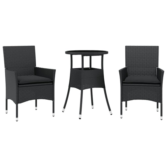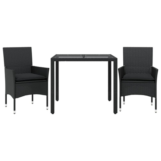 3-tlg. Garten-Essgruppe mit Kissen Schwarz Poly Rattan Glas