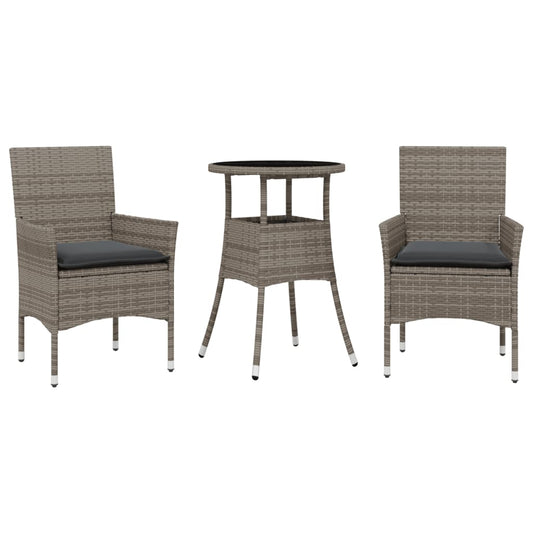 3-tlg. Garten-Essgruppe mit Kissen Grau Poly Rattan und Glas
