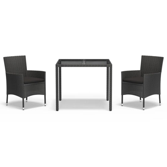 3-tlg. Garten-Essgruppe mit Kissen Schwarz Poly Rattan